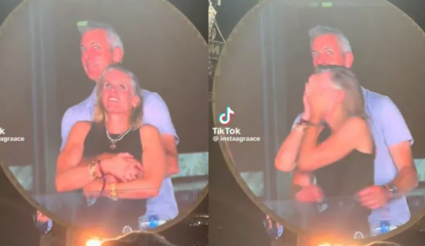 7月16日,Coldplay演唱会上,摄像师无意中将镜头对准了一对看似亲密的中年男女。当发现被拍摄时,男子迅速蹲下躲避镜头,女子则慌忙用双手遮挡脸部。这一不寻常的反应引发了主唱克里斯·马丁的调侃,也引起了现场观众的窃笑。